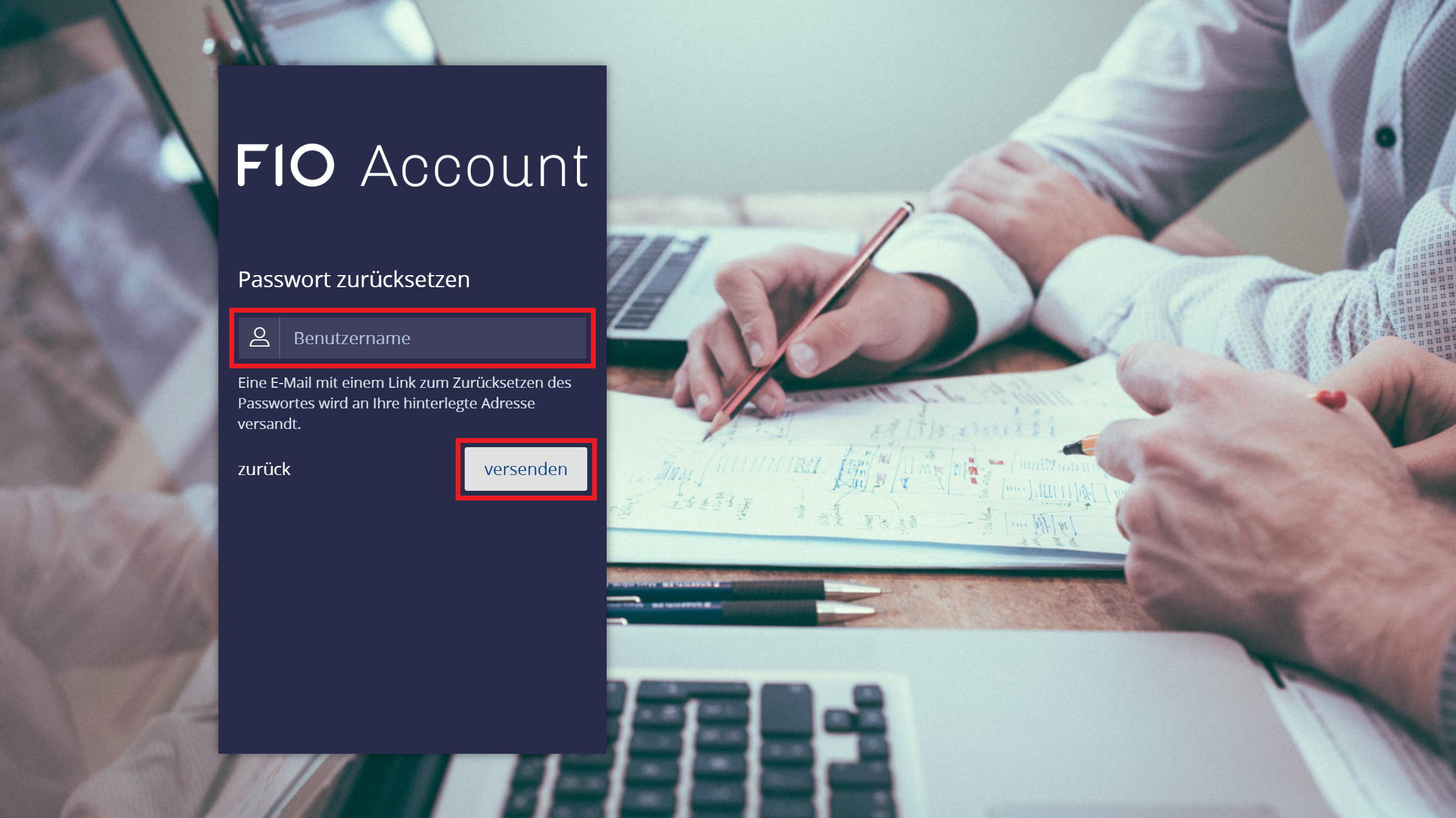 Wenn Sie Ihr Passwort für die Anmeldung zu FIO ACCOUNT vergessen haben, können Sie dieses zurücksetzen.